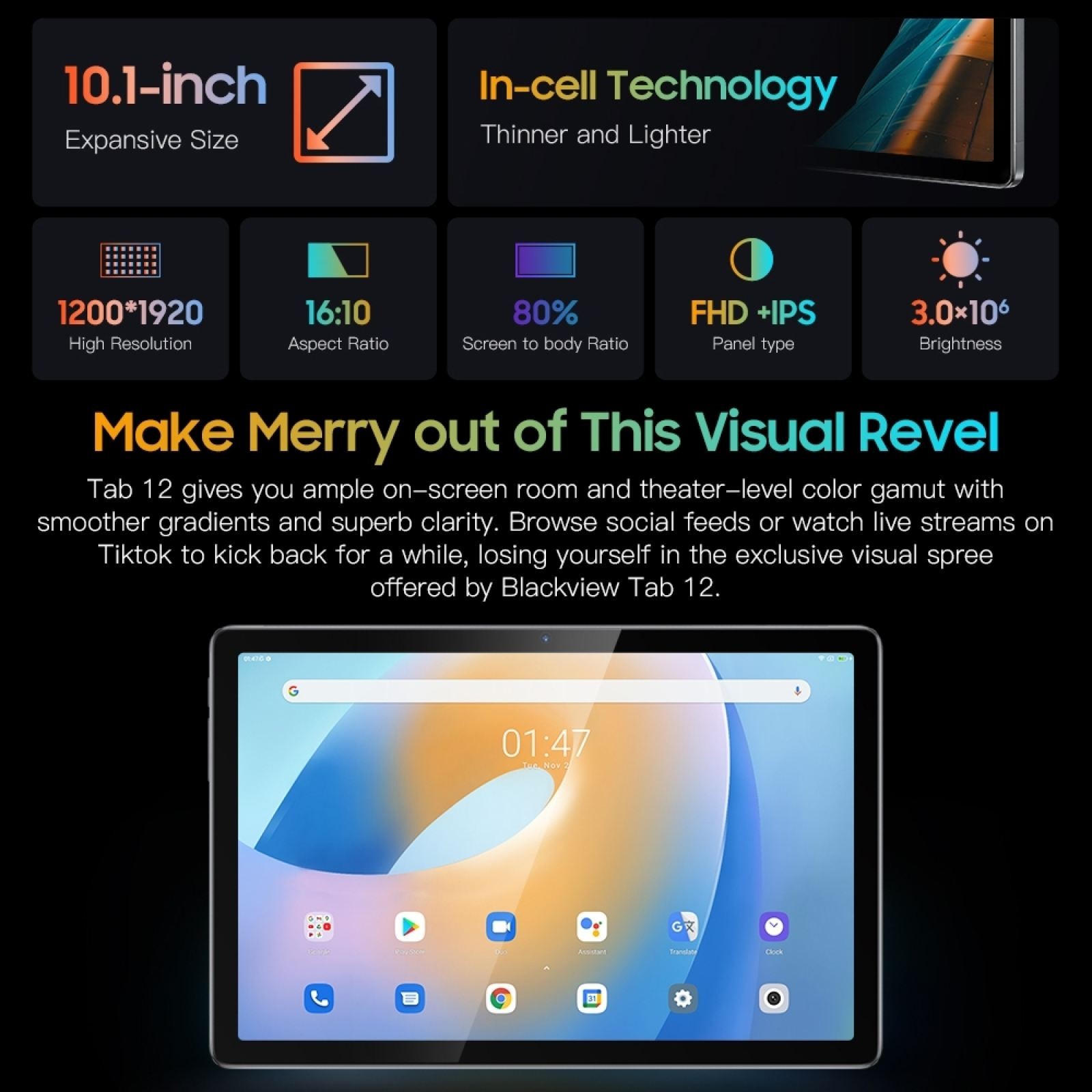 Blackview Tab 12, 10.1 inch, 4GB+64GB Android 11 Octa Core CPU, Support Dual SIM & WiFi & BT & TF Card, 4G Phone Call