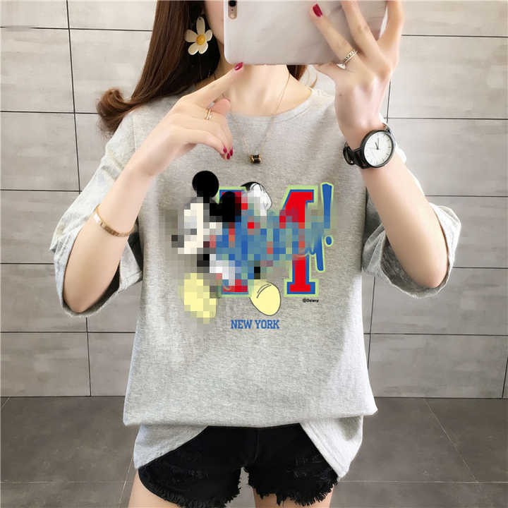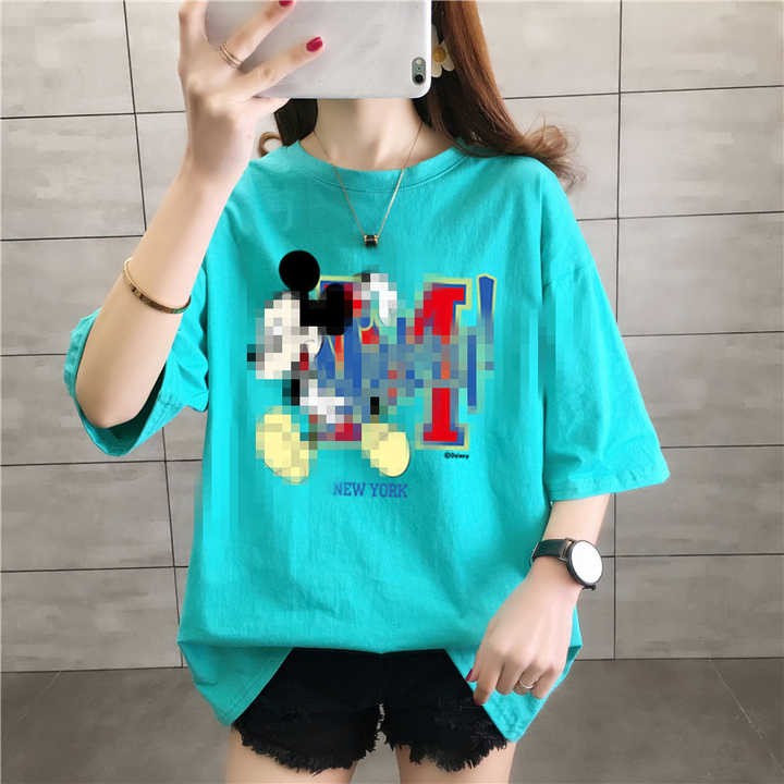 New summer 2020 loose-fitting T-shirts short sleeves O- neck solid-color casual fashion cartoon print women T-shirts